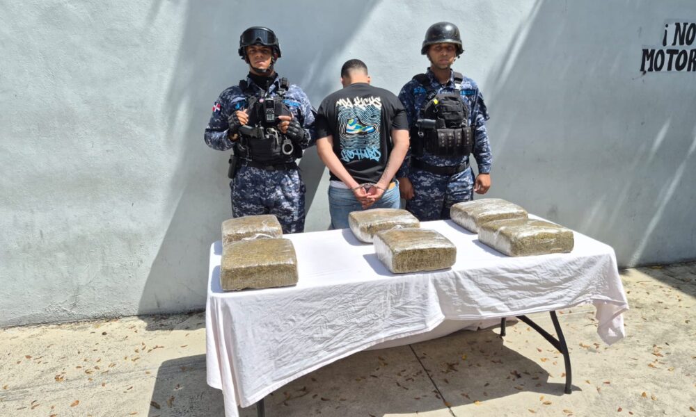 Agentes de la Policía Nacional ocuparon seis paquetes de un vegetal presumiblemente marihuana y arrestaron en flagrante delito a un hombre durante un operativo preventivo realizado...