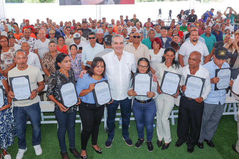 El presidente Luis Abinader entregó títulos de propiedad a 537 familias del populoso sector La Yagüita de Pastor, al norte de esta ciudad norteña.