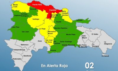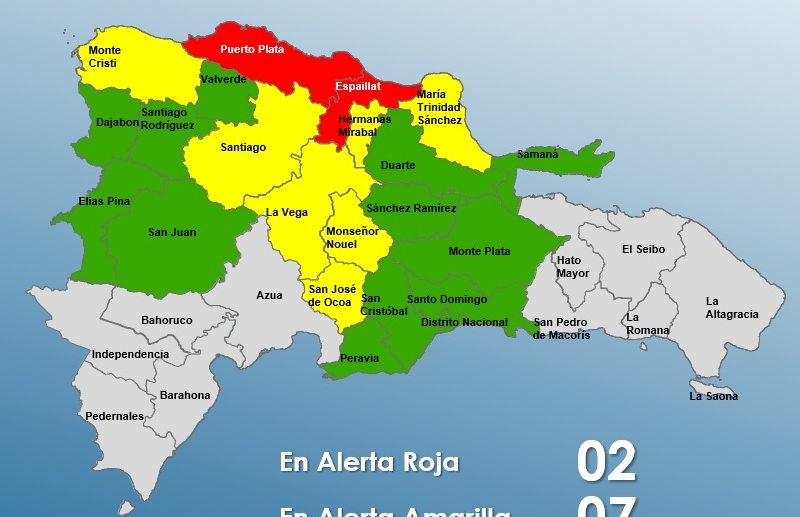 Dos provincias se encuentran en alerta roja, mientras que siete permanecen en alerta amarilla y 12, junto al Distrito Nacional, en verde, debido a la incidencia de una vaguada prefrontal al noroeste del...